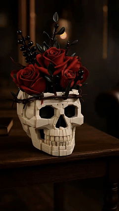 💀🌹Gothic Skull Rose Building Set for Adults🎁